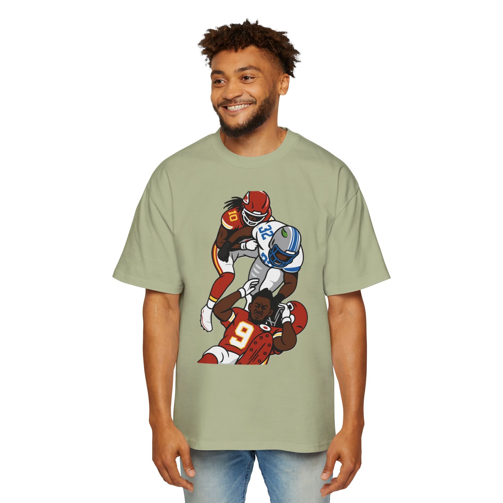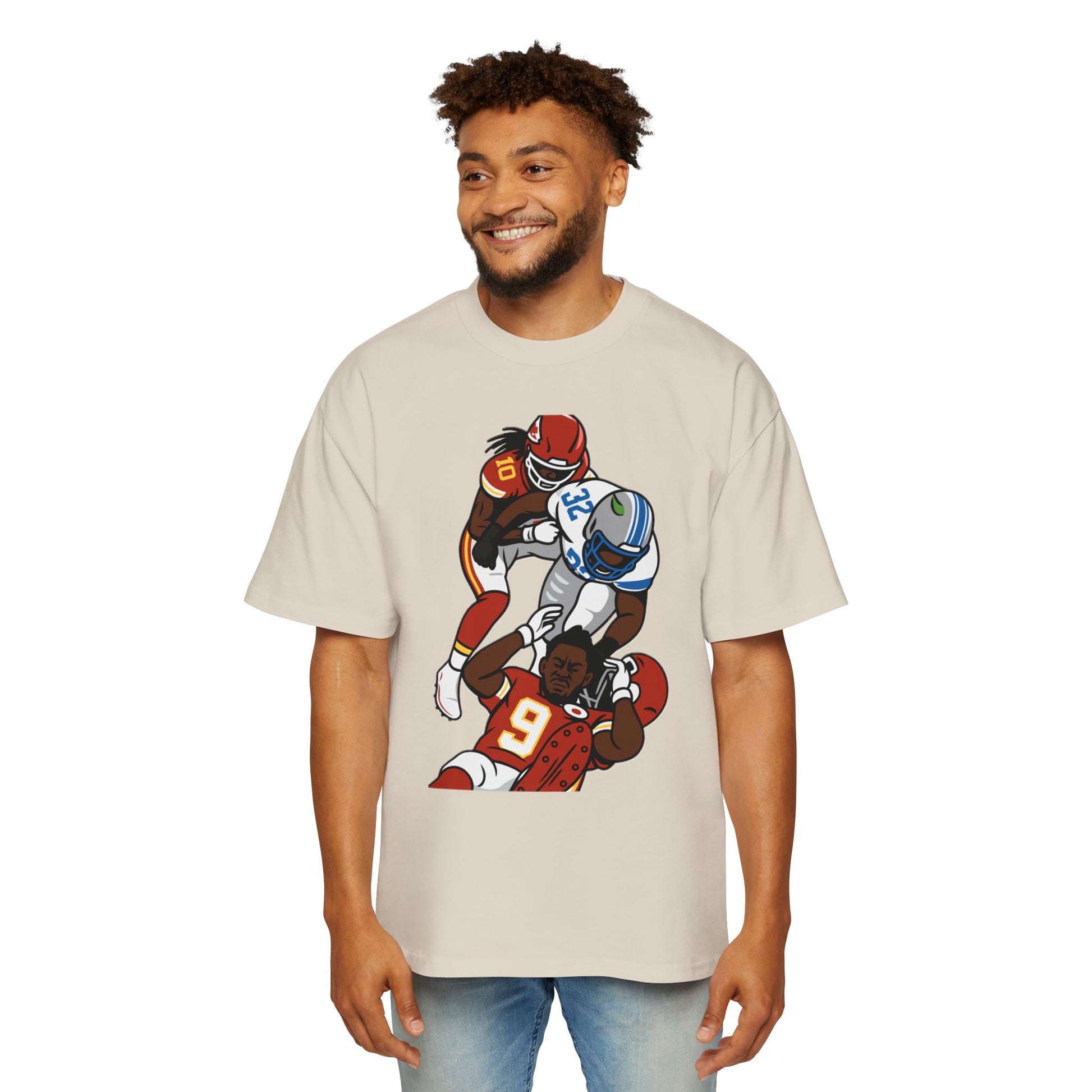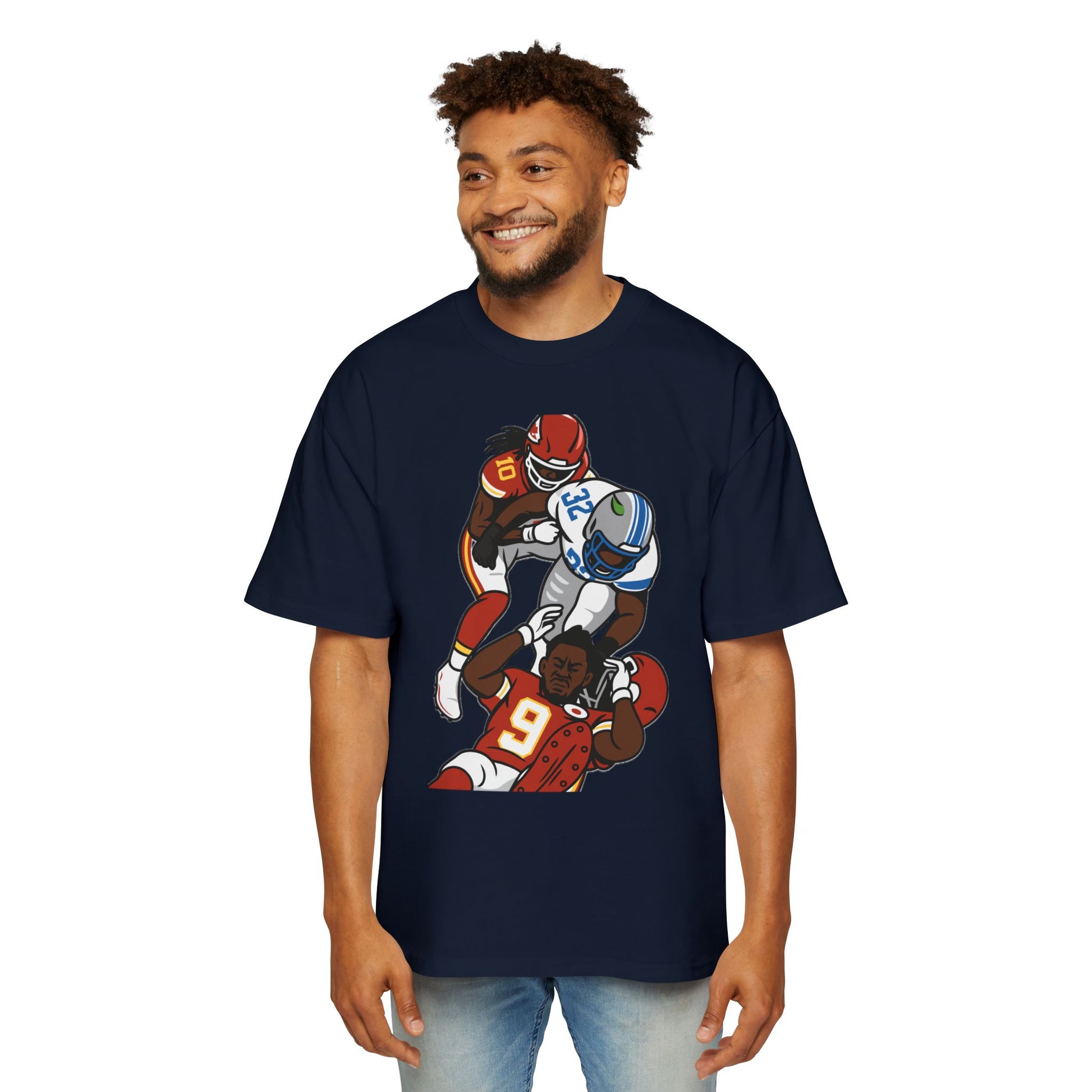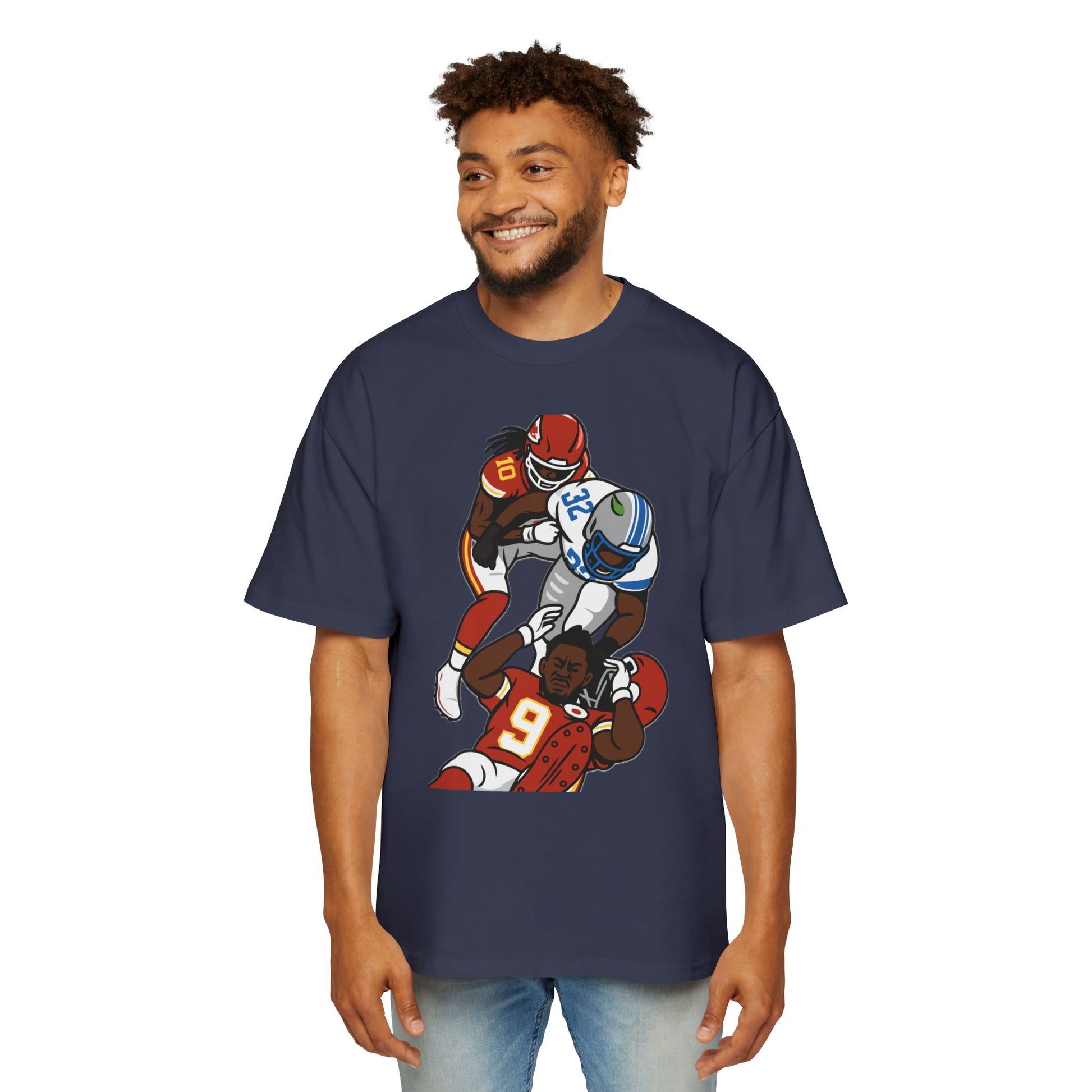 This oversized tee embodies the grit and toughness of a football player among the team. It exudes a rugged, sporty vibe and is perfect for sports enthusiasts and football fans. Ideal for game days, sports events, and casual wear.